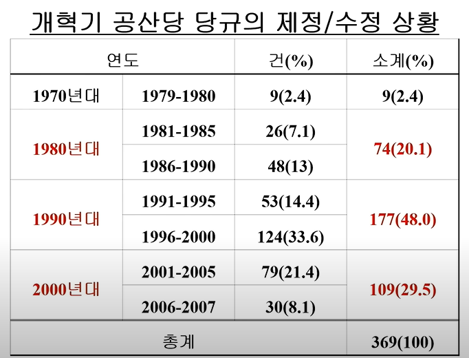 1970년대에는 9건밖에 되지 않던 당 내 법규 수정이